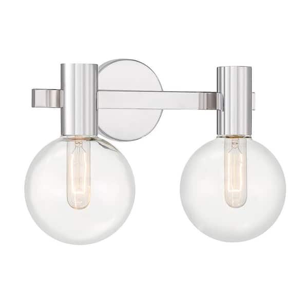 Wright 15.50 in. 2-Light Chrome Vanity Light with Clear Glass Shades