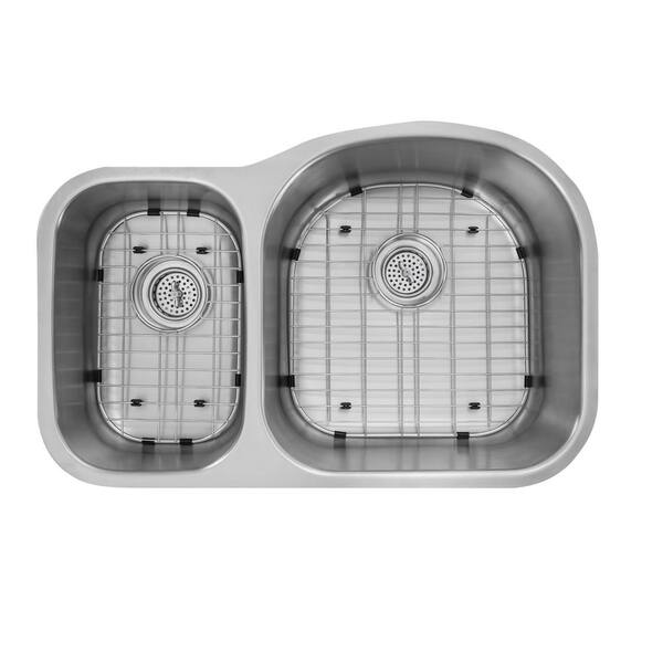 All-in-One Undermount 18-Gauge Stainless Steel 32 in. 0-Hole 30/70 Double Bowl Kitchen Sink with Pull Out Faucet