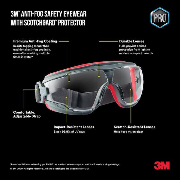 Protector Gray/Red Anti-Fog Goggles with Clear Lens