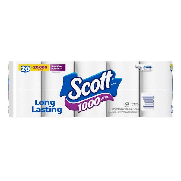 White Long-Lasting Toilet Paper (1000-Sheets per Roll 20-Rolls per Pack)