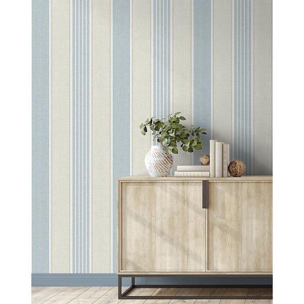 56 sq. ft. Blue Oasis Cape Cod Stripe Unpasted Paper Wallpaper Roll