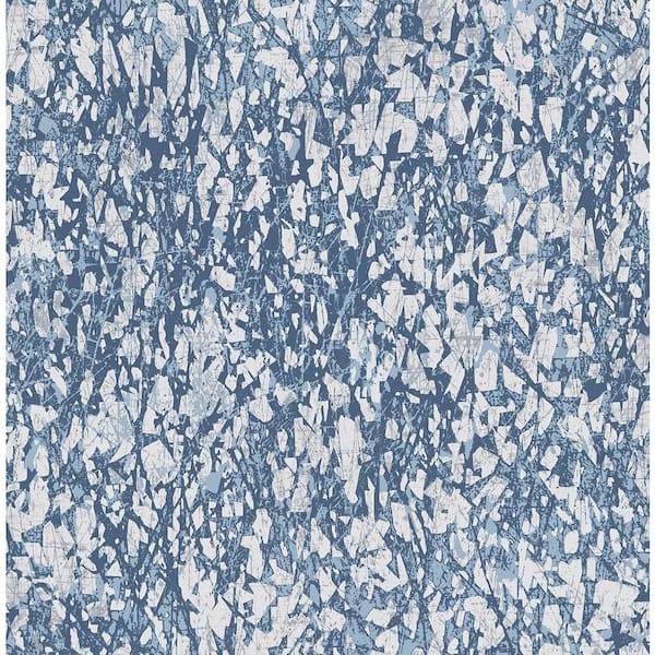 56 sq. ft. Metallic Blue Oasis Cracked Abstract Paper Unpasted Wallpaper Roll