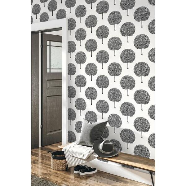 57.5 sq. ft. Alabaster and Contrast Demi Trees Unpasted Nonwoven Paper Wallpaper Roll