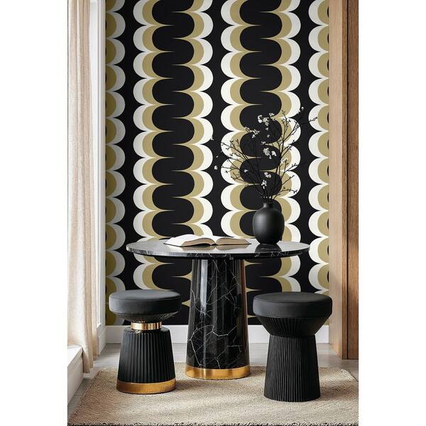 57.5 sq. ft. Black and Metallic Golden Straw Mandolin Geometric Stripe Unpasted Nonwoven Paper Wallpaper Roll