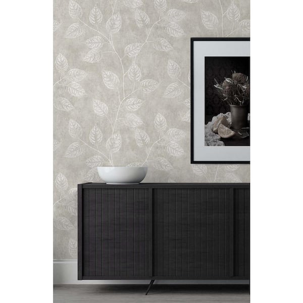 57.5 sq. ft. Grey Taupe Branch Trail Silhouette Nonwoven Paper Unpasted Wallpaper Roll