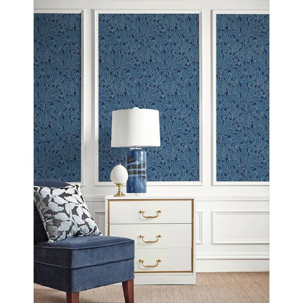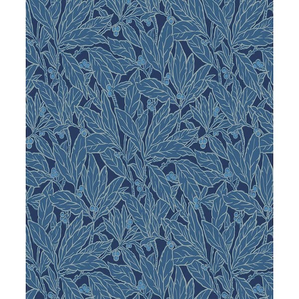 57.5 sq. ft. Marine Blue Leaf and Berry Unpasted Nonwoven Wallpaper Roll