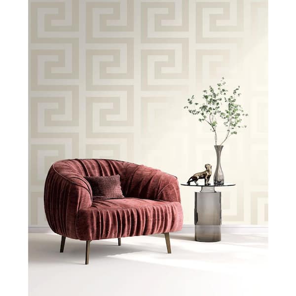 57.5 sq. ft. Metallic Champagne Forte Greek Key Unpasted Nonwoven Paper Wallpaper Roll