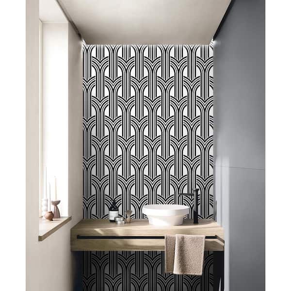 57.5 sq. ft. Off-White and Onyx Hendrix Arches Unpasted Nonwoven Paper Wallpaper Roll