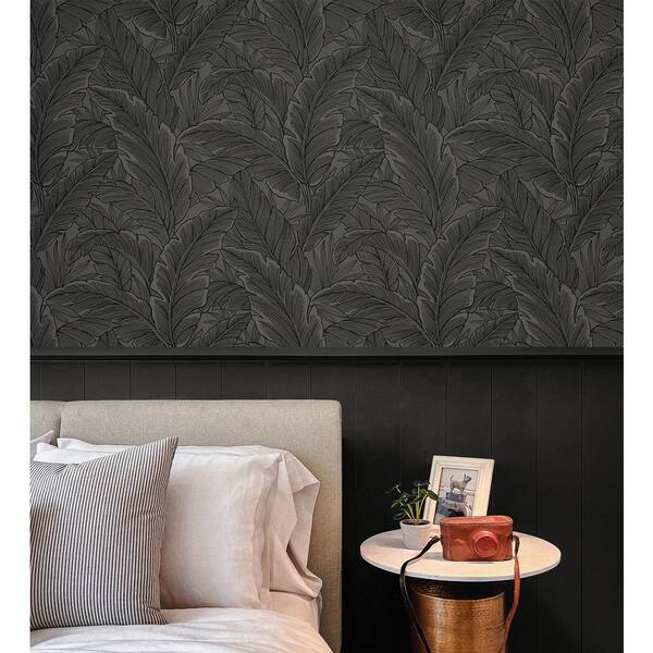 57.5 sq. ft. Slate Grey Gulf Tropical Leaves Unpasted Nonwoven Paper Wallpaper Roll