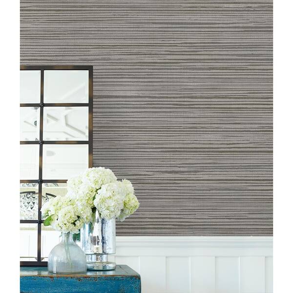 60.75 sq. ft. Alloy Grey Hillside Stringcloth Paper Unpasted Wallpaper Roll