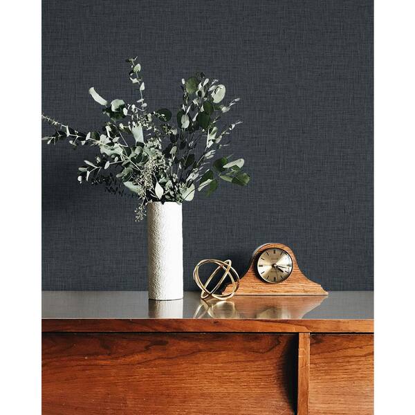 60.75 sq. ft. Denim Blue Stretford Linen Embossed Vinyl Unpasted Wallpaper Roll