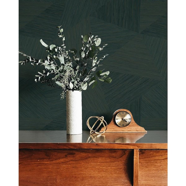60.75 sq. ft. Metallic Dark Jade Middleton Triangles Embossed Vinyl Unpasted Wallpaper Roll