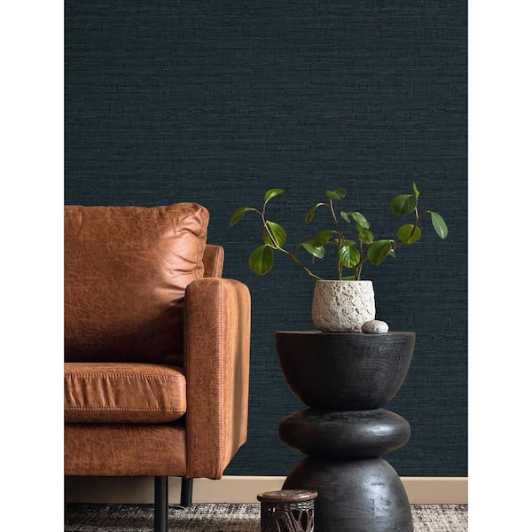 60.75 sq. ft. Midnight Blue Wilslow Weave Embossed Vinyl Unpasted Wallpaper Roll