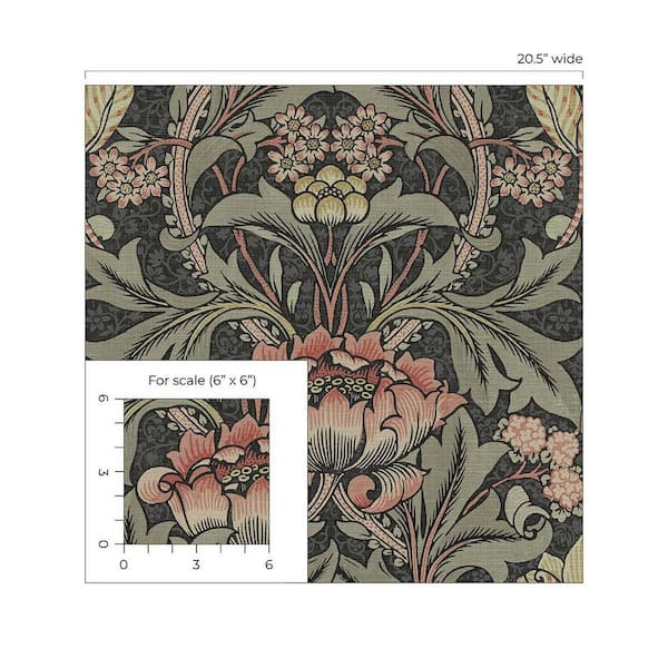 Charcoal and Rosewood Acanthus Floral Prepasted Wallpaper Roll 56 sq. ft.