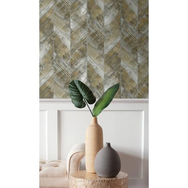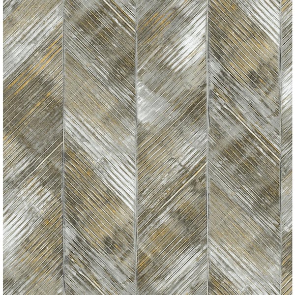 Hubble Herringbone Stripe Metallic Silver and Ebony Paper Strippable Roll (Covers 56 sq. ft.)