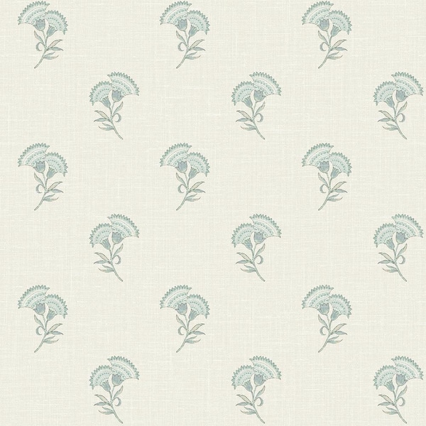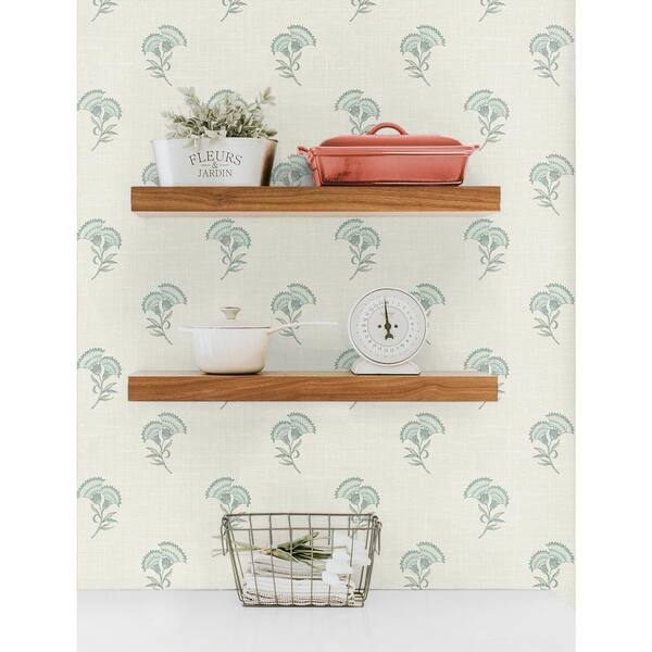 Minty Meadow and French Grey Lotus Branch Floral Paper Unpasted Nonwoven Wallpaper Roll 60.75 sq. ft.