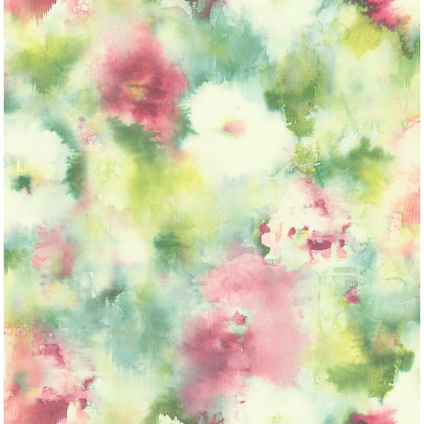 Watercolor Bloom Hot Pink, Lime Green, and Off-White Paper Strippable Roll (Covers 56.05 sq. ft.)