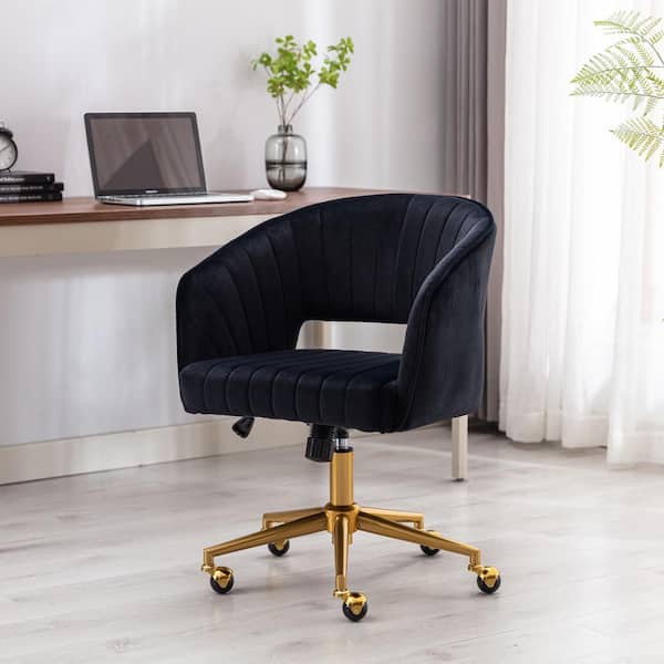 35.04 in. H Velvet Accent Adjustable Home Office in Black Arm Chair with Gold Plating Base