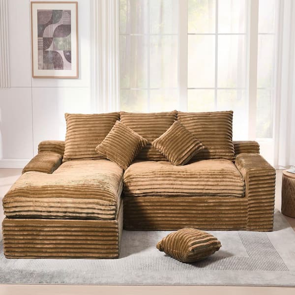 4-Seats Modular Sectional 98 in. W Armless Fabric L-Shaped Performance Fabric Sofa in. Brown with Chaise