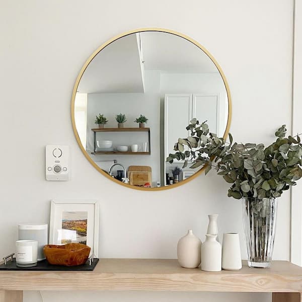 Gold 24 in. W x 24 in. H Classic Round Anti-Rust Aluminum Framed Mirror and Modern Wall Decor