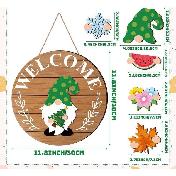 Seasonal Gnome Interchangeable Decor 12 in. x 12 in. Round by Wooden Wall Art Multicolor