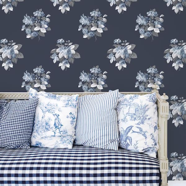 Secret Garden Navy and Blue Detailed Bouquet Non-Woven Paper Non-Pasted Wallpaper Roll (Covers 57.75 sq.ft.)