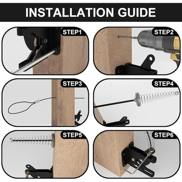 Self Locking Fence Gate Latch with Stainless Steel Spring Cable Pull Carbon Steel Black Durable Rust-Resistant