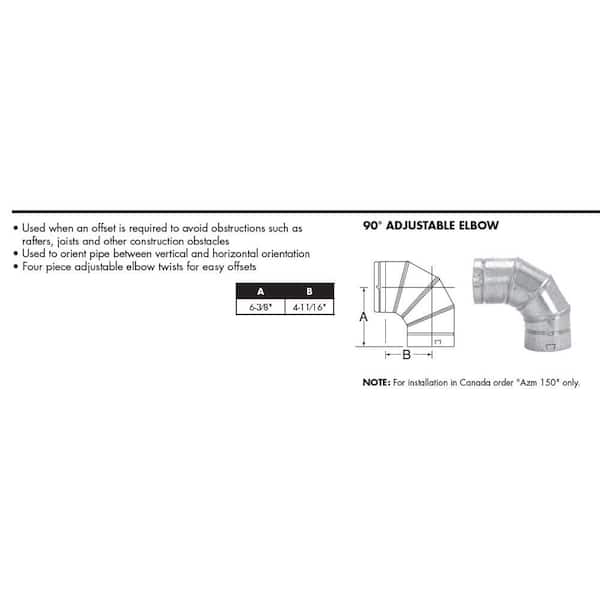 Model RV Type B Gas Vent 3in. Steel Adjustable 90 Degree Gas Vent Elbow