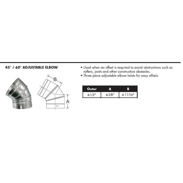 Model RV Type B Gas Vent 4in. Steel Adjustable 45/60-Degree Gas Vent Elbow