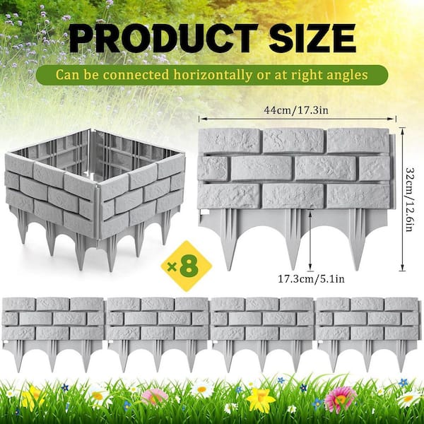 11.33 ft. x 7.5 in. Gray No Dig Plastic Wall Block Landscape Edging for Mulch Flower Bed Patio Lawn Path Walkway 8-Piece