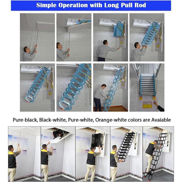 12-Step Carbon Steel Attic Ceiling Folding Ladder, Retractable Loft Stairs with 660 lbs. Capacity, Max 9.8 ft. Height