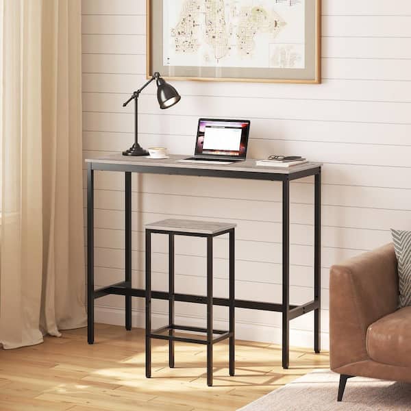 29.5 in. Industrial Greige and Black Metal Bar Stools with Footrest for Dining, Kitchen, Patio or Garden Stool (2-Set)