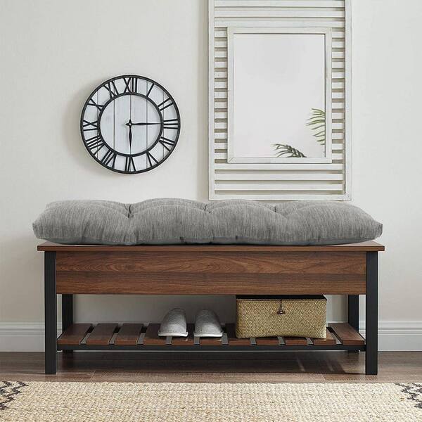 40 x 15 in. Outdoor Bench Plush Cushion with Ties and Non-Slip Bottom in Classic Grey