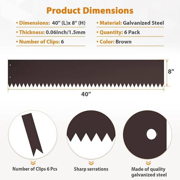 40 x 8 in. Brown Hammer in Metal Landscape Edging for Landscaping, 6-Pack