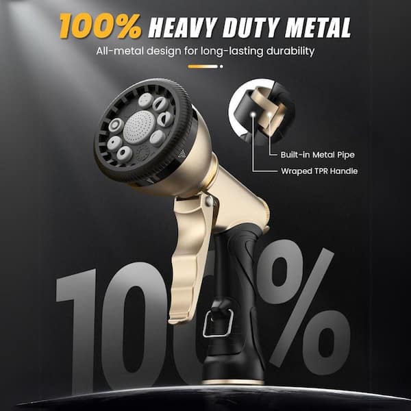 9 Spray Patterns Garden Hose Nozzle High Pressure Water Hose Nozzle Heavy Duty Metal for Watering Plants and Lawn, Grey