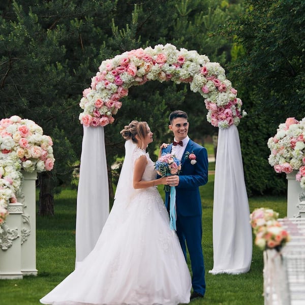 91 in. Metal Garden Arch Trellis Pergola Arbor w/ 2 Assembled Sizes for Climbing Plant Wedding Party Bridal Black