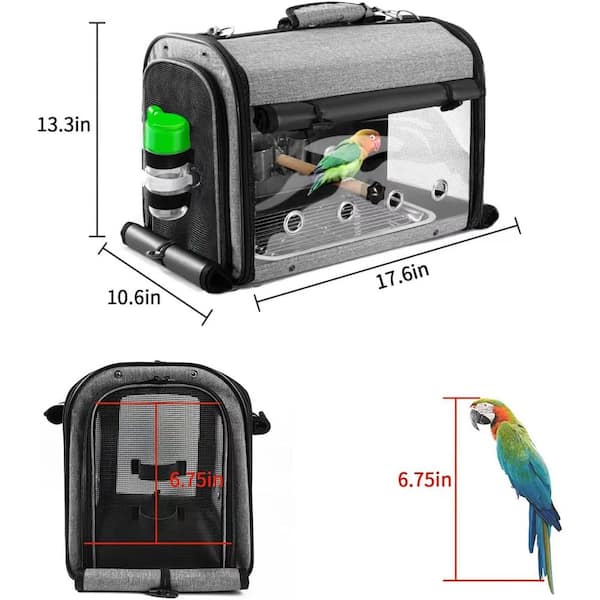 Portbale Bird Carrier Bag Bird Travel Cage with Stand Transparent Breathable in Gray