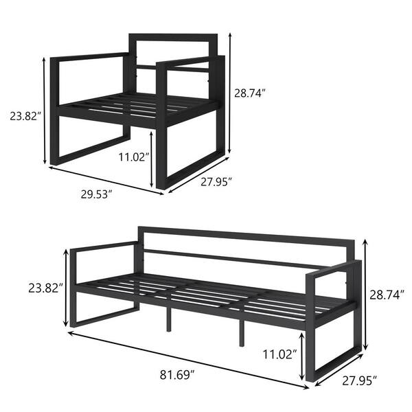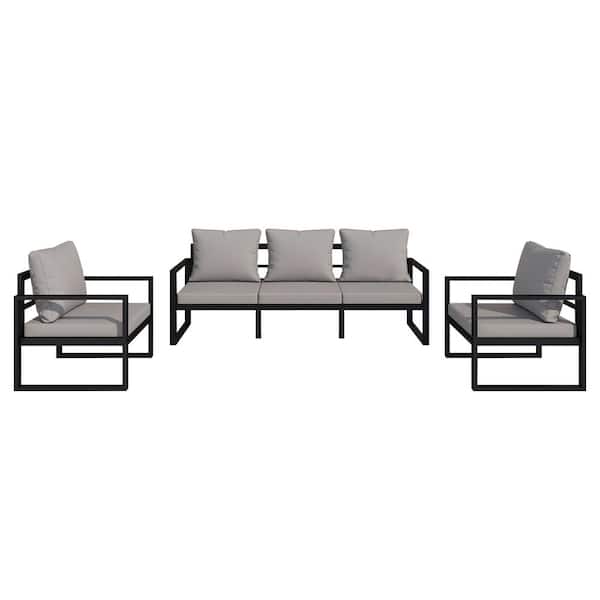 Serga 3-Pieces Metal Patio Conversation Set Furniture Set Outdoor with Gray Cushions