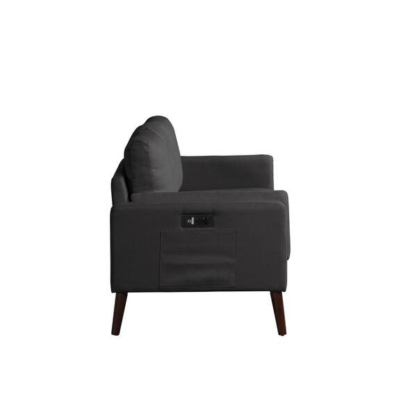 Naik Collection 77.2 in. W Straight Arm Polyester Modern Rectangle USB Power Outlet Sofa in Black