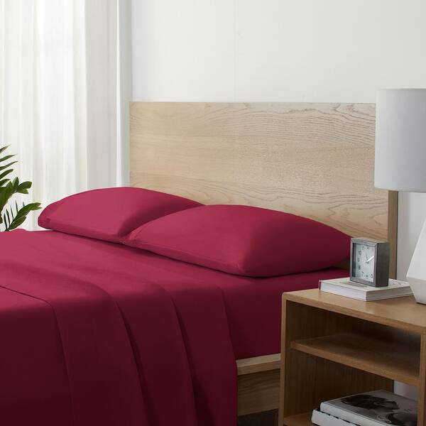 Supersoft 4-Piece Maroon Solid Polyester Queen Washed Cooling Sheet Set
