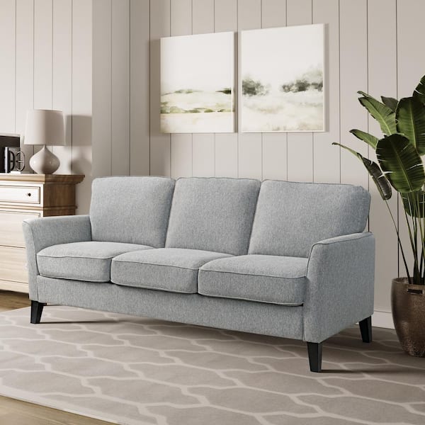 Walton 79.9 in. Flared Arm Polyester Rectangle Sofa in. Light Grey