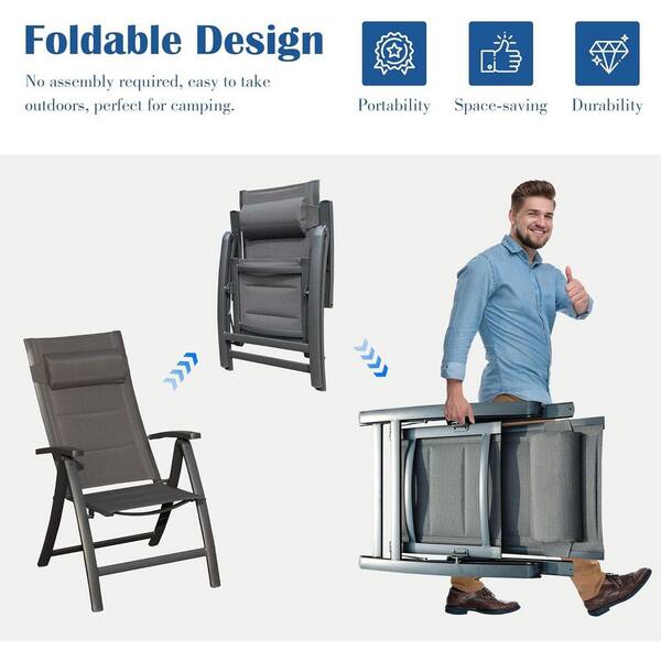 Set of 2 Aluminium Folding Lawn Chair with Adjustable High Backrest Outdoor Lounge Chair Patio Dining Chairs