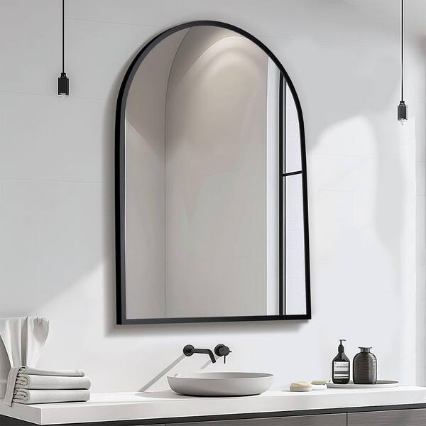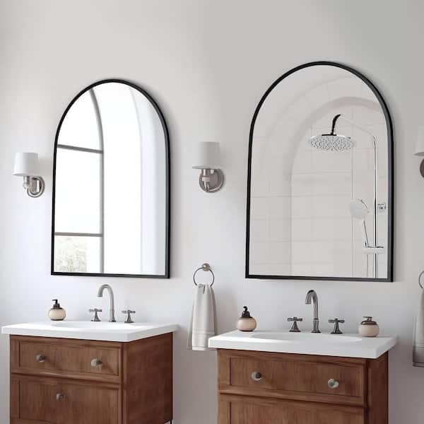 Set of 2 Black Arch 26 in. W x 32 in. H Aluminum Slim Frame Bathroom Mirrors Arched Corner
