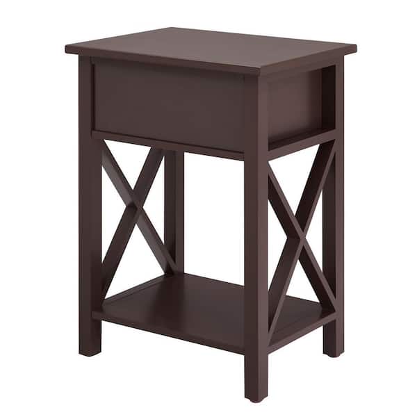 (Set of 2) Espresso Wooden 1-Drawer End Tables - Modern Minimalist Nightstands with Storage
