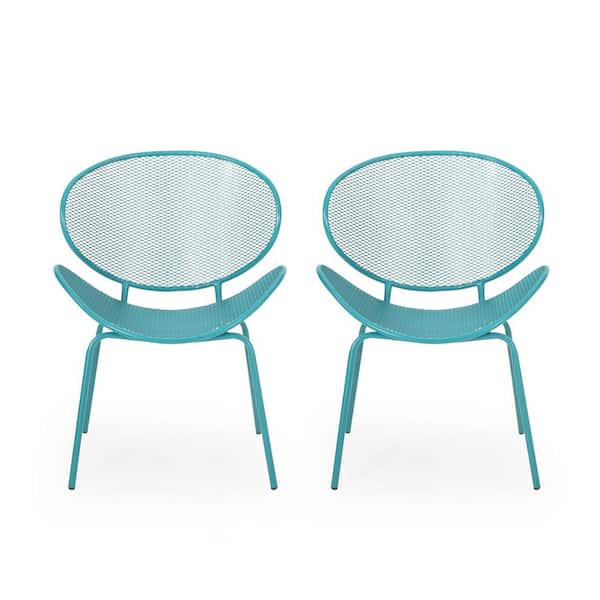 Set of 2 Outdoor Patio Iron Dining Chair Set in Teal