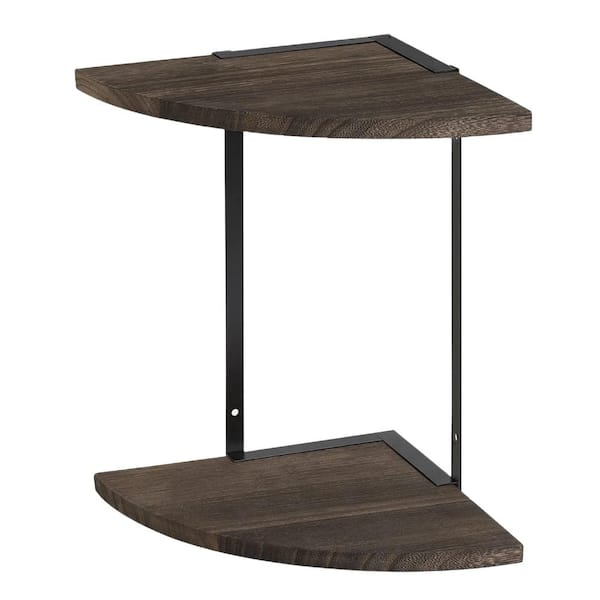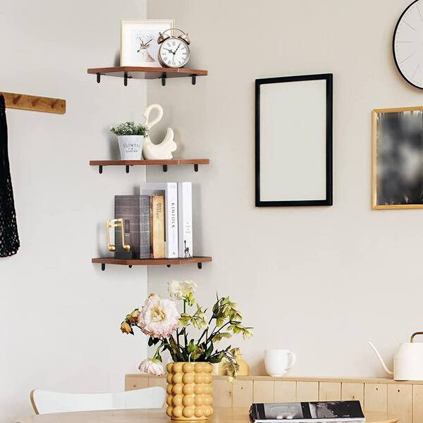 Set of 3 Floating Corner Shelves Burnt Brown Wall Mounted Wood Shelves