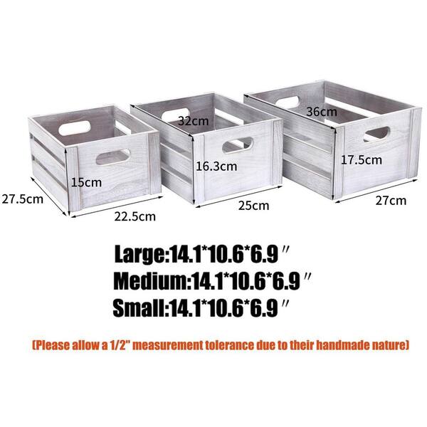 Set of 3 Rustic White Wooden Storage Crates Nesting Decorative Boxes for Storage Display Decor 11 in. 13 in. 15 in. W