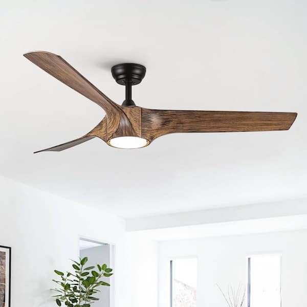 Splenda 56 in. Indoor Matte Black Farmhouse Ceiling Fan with Light and ABS Wood Grain Blades