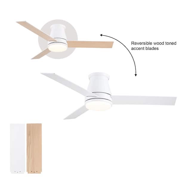 Topsky 48 in. Indoor Matte White Low Profile Standard Ceiling Fan with Light and Dual-Finish Blades