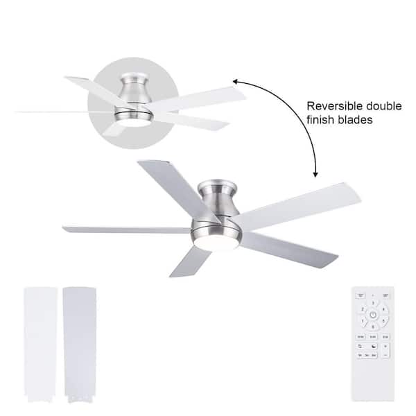 Topsky 52 in. Indoor Brushed Nickel Low Profile Standard Ceiling Fan with Light and Dual-Finish Blades